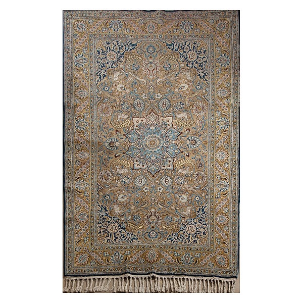 Alfombra persa de Smirna con campo verde y motivos florales estilizados