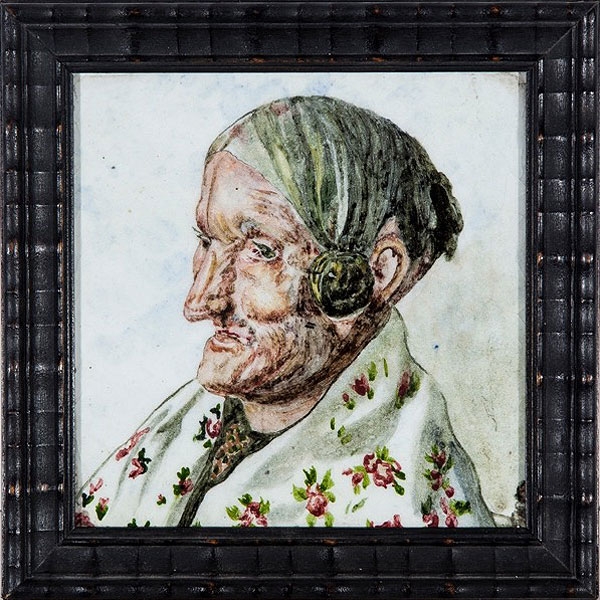 Panel de cerámica representando a un anciana, Daniel Zuloaga.