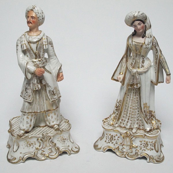 Dos figuras de turcos de porcelana francesa Viejo parís con realces dorados S.XIX