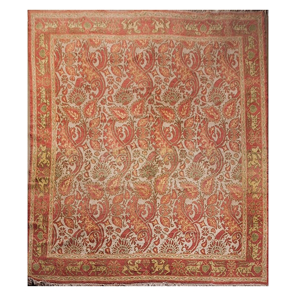 Alfombra de nudo español con motivos vegetales estilizados, de la Fundación de Gremios. Faltas