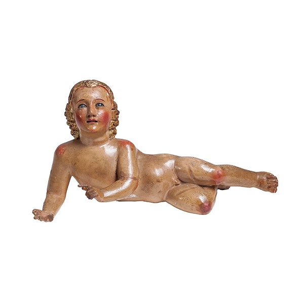 Niño Jesús recostado de madera tallada y policromada, Colombia S.XVIII