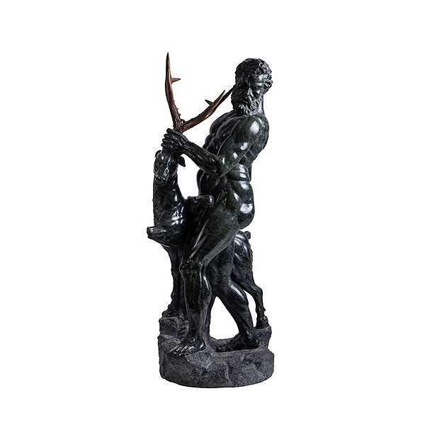 "Hércules y la cierva de Cirenea" escultura de mármol verde serpentino, trabajo italiano del S.XIX