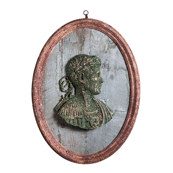 Pareja de óvalos italianos de madera policromada con bustos de perfil