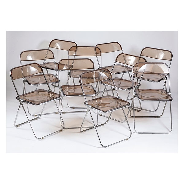 Juego de diez sillas plegables de metal cromado y lucite modelo" Plia" según diseño original de Giancarlo Piretti para Castelli años 70
