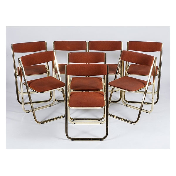 Juego de ocho sillas plegables de metal dorado modelo "Tamara" editadas por Arrben, Italia años 80