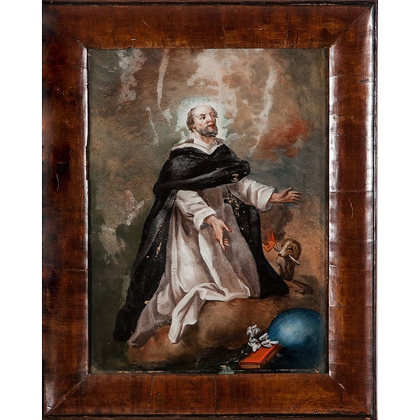Vidrio pintado al óleo por el reverso "Santo Domingo de Guzmán" S.XVIII.