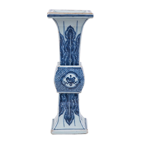 Jarrón "Gu" cuadrangular chino de porcelana azul y blanca