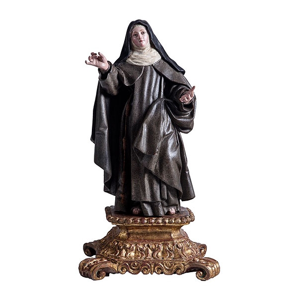 Atribuida a Pedro de Mena ( Granada 1628 - Málaga 1688) "Santa Teresa" madera tallada y policromada sobre base dorada