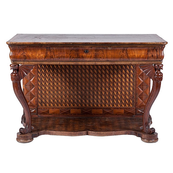 343 Publicado en GOYA. Subasta 17 y 18 Diciembre 2018 tamaño de la fuente disminuir el tamaño de la fuente aumentar tamaño de la fuente Imprimir Compartir Consola fernandina de caoba y palma de caoba con tapa de marquetería geométrica S.XIX Faltas 78 x 127 x 85 cm 600 - 800 € Información adicional Precio de salida: 600€ >>: PUJAR AQUÍ Tweet Etiquetado como MUEBLES Valora este artículo 1 2 3 4 5 (0 votos)