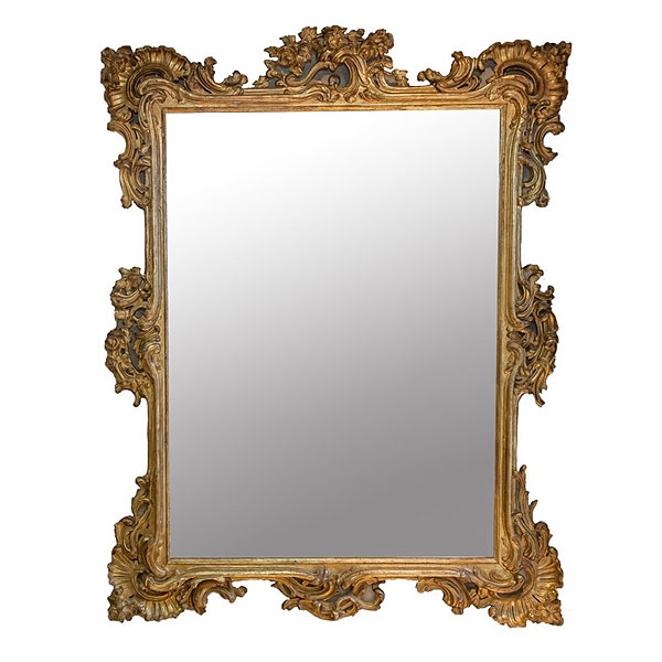Espejo español de madera tallada y dorada estilo Rococó S.XIX