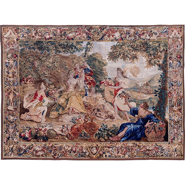 Tapiz francés “Alegoría del Verano” con cenefa de roleos vegetales y flores, pps.S.XVIII
