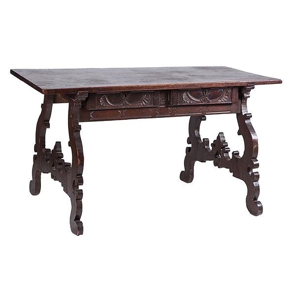 504 Publicado en GOYA. Subasta 17 y 18 Diciembre 2018 tamaño de la fuente disminuir el tamaño de la fuente aumentar tamaño de la fuente Imprimir Compartir Mesa española de nogal con pata de lira y cajones tallados, ffs.S.XVII 83 x 93 x 152 cm 2.000 - 2.500 € Información adicional Precio de salida: 2000€ >>: PUJAR AQUÍ Tweet Etiquetado como MUEBLES Valora este artículo 1 2 3 4 5 (0 votos)
