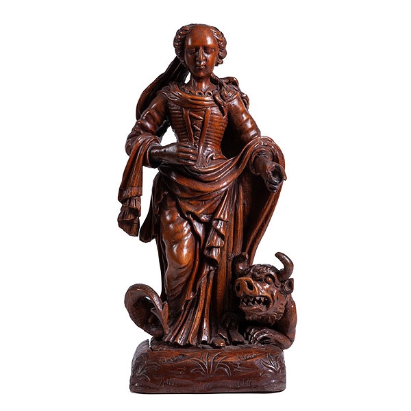 Santa Margarita de madera tallada en su color, trabajo del Norte de Francia ffs.S.XVI