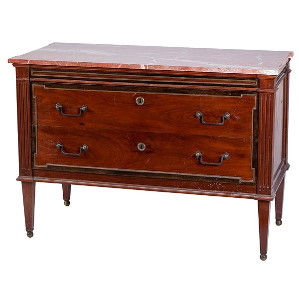 288 Publicado en GOYA. Subasta 5 Marzo 2019 tamaño de la fuente disminuir el tamaño de la fuente aumentar tamaño de la fuente Imprimir Compartir Cómoda Neoclásica de dos cajones en madera de caoba con tapa de mármol, ffs.S.XVIII. Mármol asociado 80 x 53 x 112 cm1.000 - 1.200 € Información adicional Precio de salida: 1000€ >>: PUJAR AQUÍ Tweet Etiquetado como MUEBLES Valora este artículo 1 2 3 4 5 (0 votos)