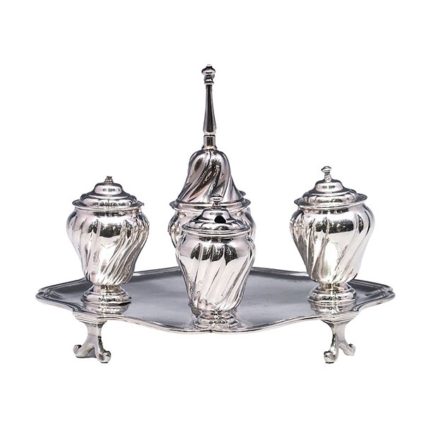 Escribania de plata con decoración de gallones entorchados con marcas de Córdoba, Mateo Martínez Moreno, Antonio J. de Santa Cruz, 1783