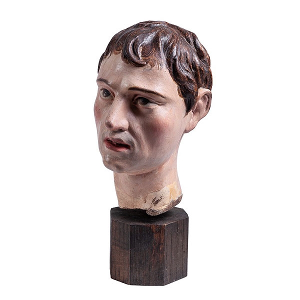 Cabeza de Santo Mártir de madera tallada y policromada, S.XVIII