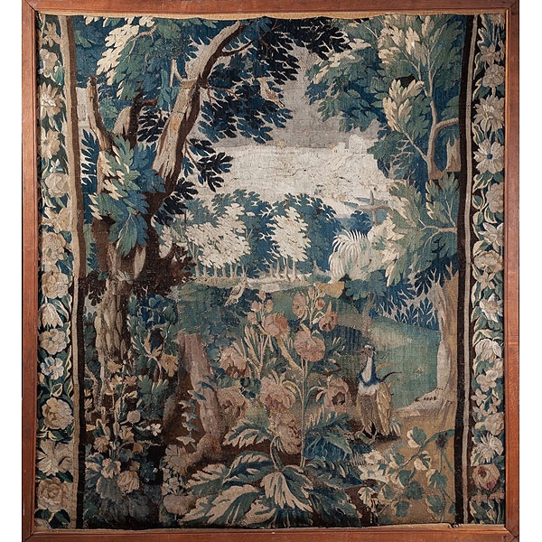 Tapiz "verdure" de lana, manufactura de Aubuson S.XVIII. enmarcado