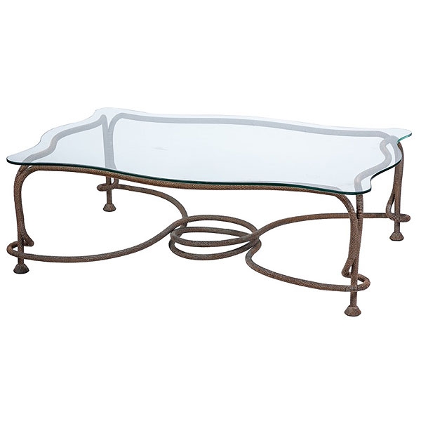 Mesa baja de centro con base en forma de cordón y tapa de mármol diseño de Emilio Rey