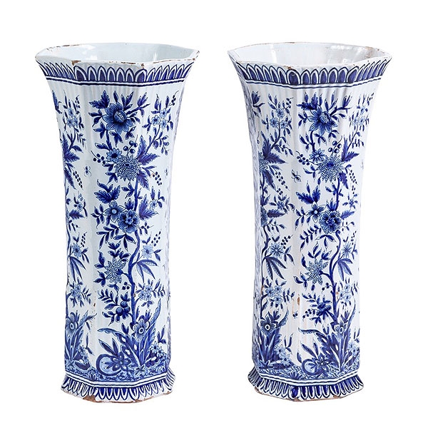 Pareja de jarrones de cerámica esmaltada azul y blanco de Delft, S.XVIII - XIX