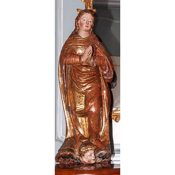 "Virgen Orante" de madera tallada, dorada y policromada, Castilla S.XVI