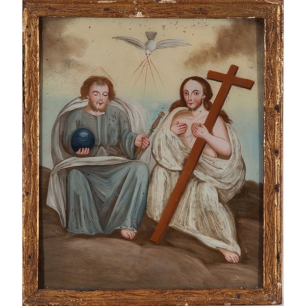 Vidrio pintado por el reverso "Trinidad" ffs.S.XVIII