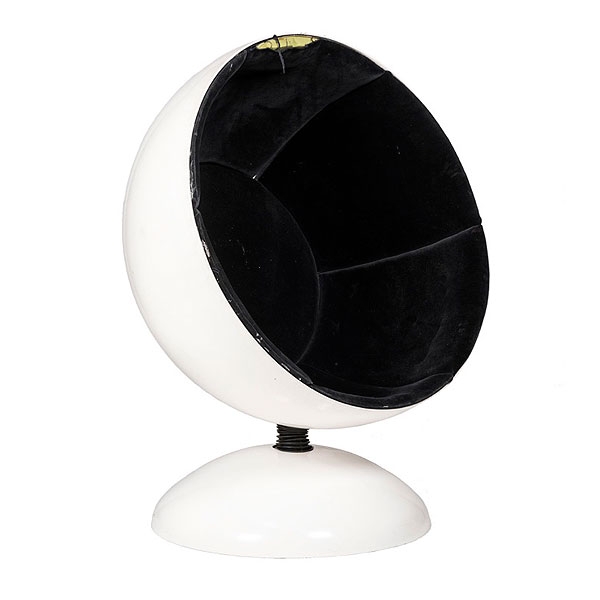 "Ball Chair" de fibra de vidrio y tapicería negra, según diseño de Eerio Arnio.