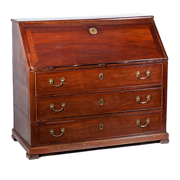 Buró español de caoba con llave y tiradores de bronce, S.XVIII