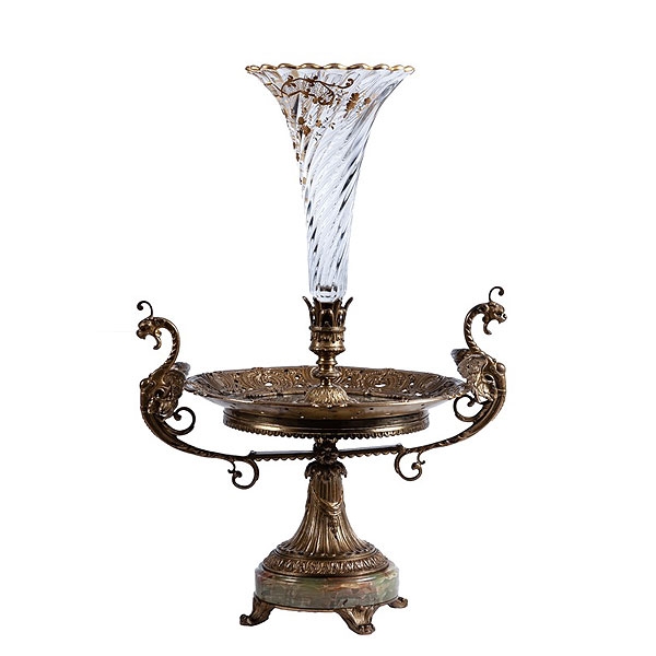 Centro de mesa de bronce y ónice con remate de cristal dorado c.1900