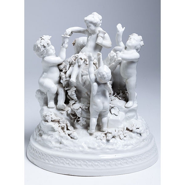 Grupo francés de porcelana blanca "Amorcillos con vides" S.XIX