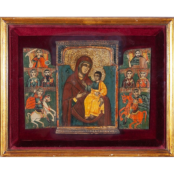 315 Publicado en GOYA. Subasta 22 y 23 Octubre 2019 tamaño de la fuente disminuir el tamaño de la fuente aumentar tamaño de la fuente Imprimir Compartir Icono tríptico ruso "Virgen con Niño y santos" pintado al temple sobre tabla S.XVIII31 x 41 cm abierto 500 - 600 € Información adicional Precio de salida: 500€ >>: PUJAR AQUÍ Tweet Etiquetado como ICONOS Valora este artículo 1 2 3 4 5 (0 votos)