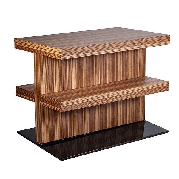 Mueble auxiliar con baldas de madera veteada y base metálica, diseño del S.XX