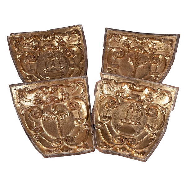 Cuatro paneles curvos tallados y dorados formando una cúpula, trabajo andaluz del S.XVII con los simbolos de las letanías de la Virgen