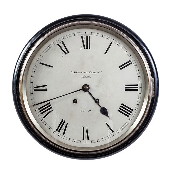 Reloj de pared circular con esfera firmada "B. Sobrecueva Miyar y Cia. Corao"