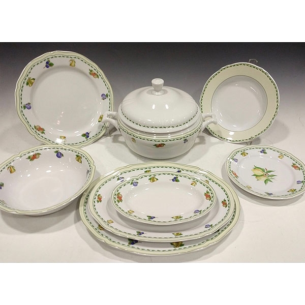 Vajilla de porcelana "Fine Royal" modelo Erika con decoración de frutas.
