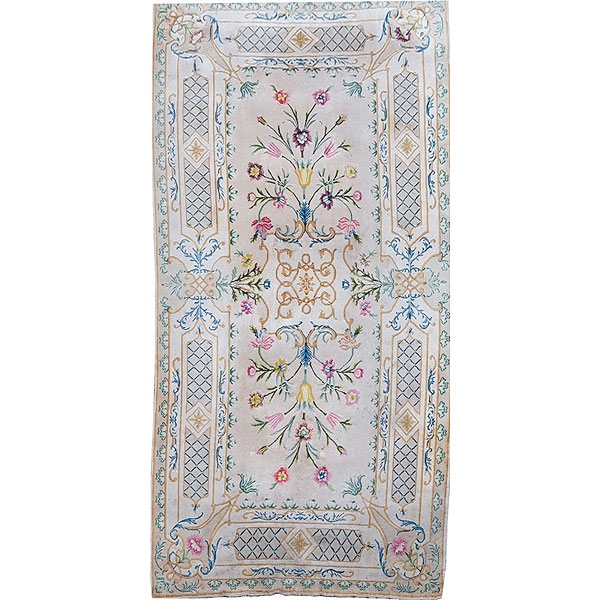 Alfombra de nudo de lana de campo marfil con decoración floral, Real Fábrica
