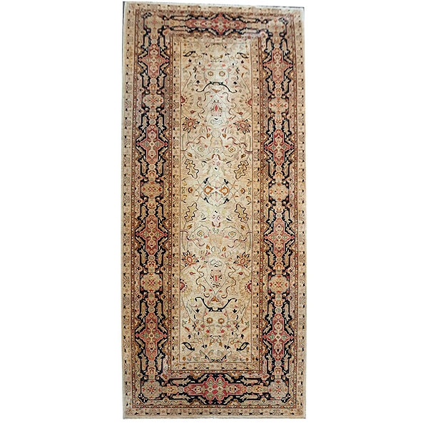 Gran alfombra persa de lana y seda de campo crudo con decoración de peonías y vegetales estilizados