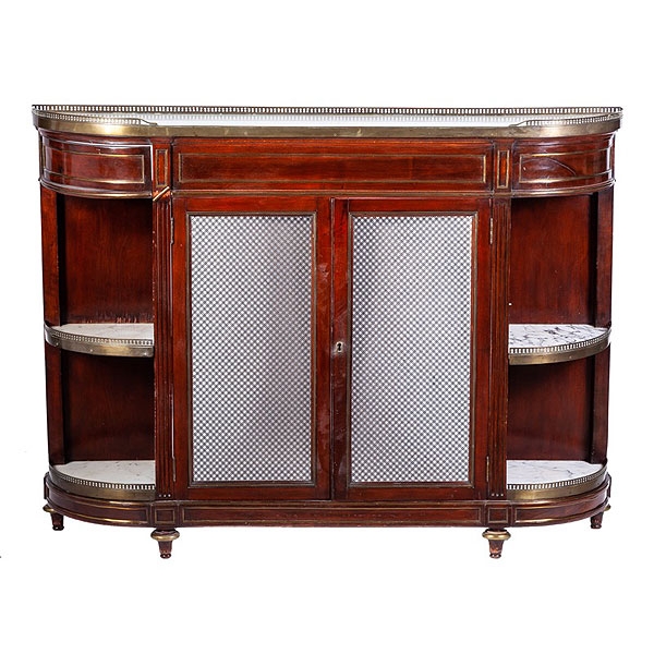 Marc du Plantier (Francia, 1901 - 1975) pareja de aparadores de caoba con molduras de latón dorado y galería calada, estilo Luis XVI. Faltas