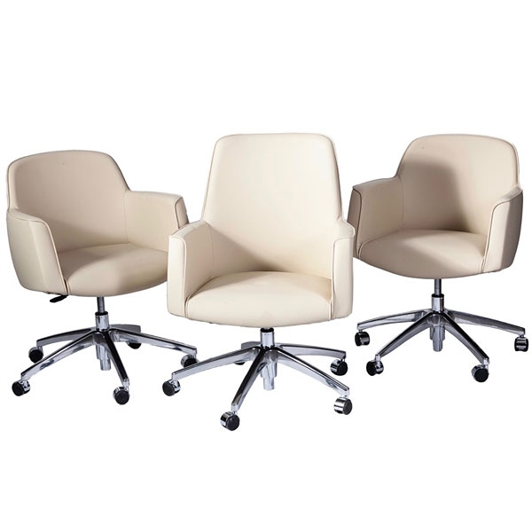Cinco butacas giratorias una de respaldo alto, de símil piel color vainilla de Estel Ibérica modelo Altagamma diseño de Jorge Pensi. Perfecto estado