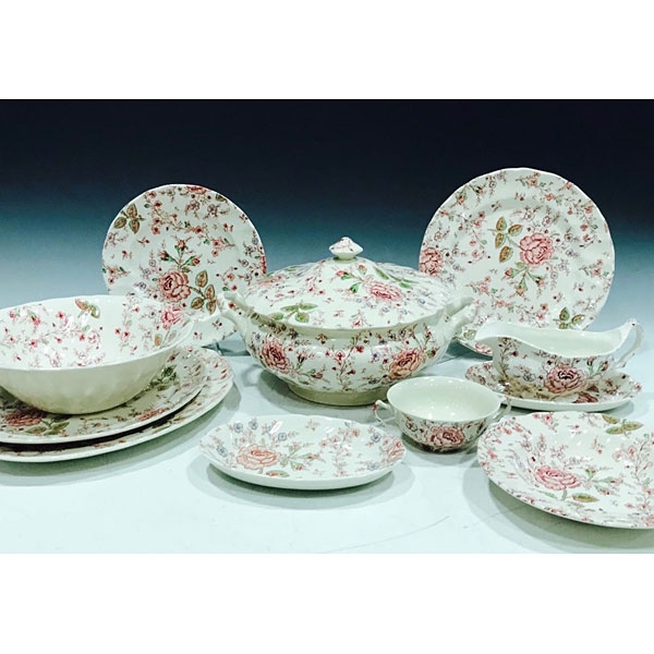 Vajilla de loza inglesa estampada de flores rosas Johnson Brothers
