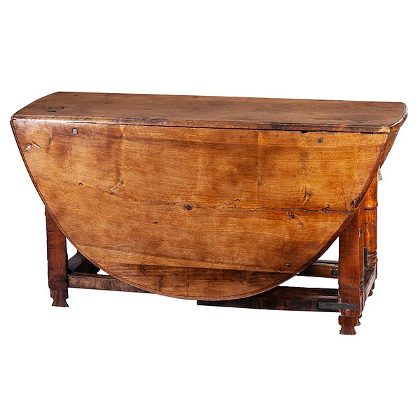 Mesa de alas plegable de nogal, con cajón adaptado, S.XVII. Restauraciones