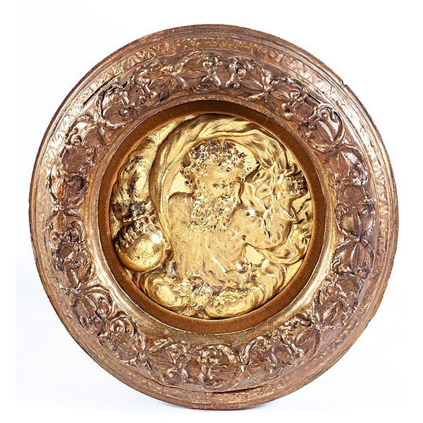 Escuela Hispano - Flamenca S.XVII "Dios Padre", tondo de cobre dorado enmarcado