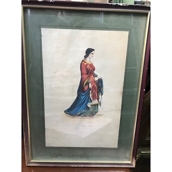 Diez litografías con diferentes vestimentas medievales S.XIX. Un cristal roto