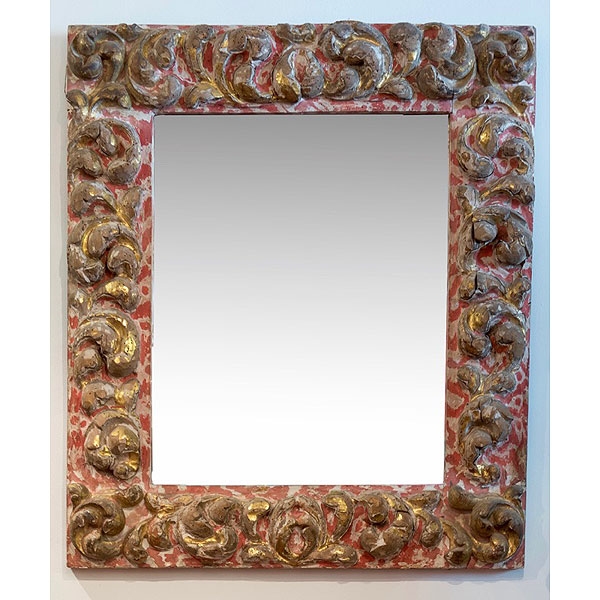 Espejo con moldura de madera tallada, policromado en rojo y dorado del S.XVII