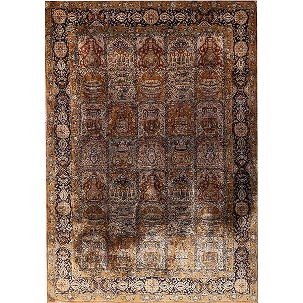Alfombra persa de jardines de campo ocre y cenefa azul
