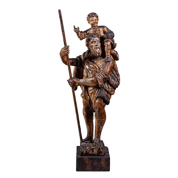 San Cristóbal de madera tallada con restos de policromía, trabajo castellano de pps.S.XVII