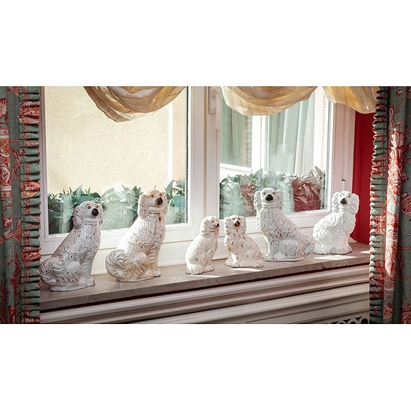 Seis perros Spaniel de loza de Staffordshire S.XIX - XX