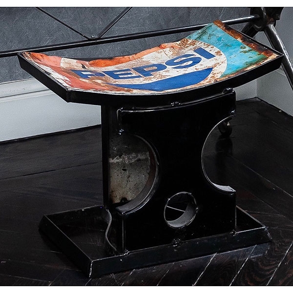 Taburete de metal realizado a partir de un anuncio de Pepsi