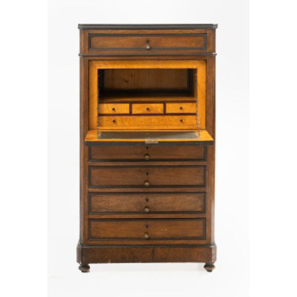 Mueble secreter abattant en madera de palo santo e interior en madera de erable con cajones. Parte inferior con 4 cajones y encimera de mármol. Época Napoleón III. Francia. S. XIX