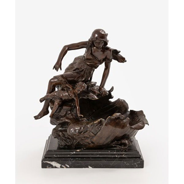 (1849-1927) "Odalisca con niño y concha" Firmado: E. CarlierBronce patinado / Base de mármol