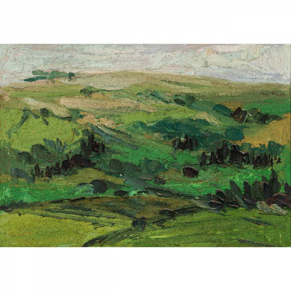 (S. XX) "Tierras verdes " Firmado: Ilegible 72 Óleo / Lienzo